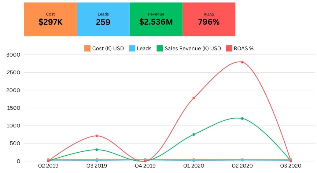 - Приход: Остварен приход од продажба од $2,536,000 за времетраењето на кампањата.