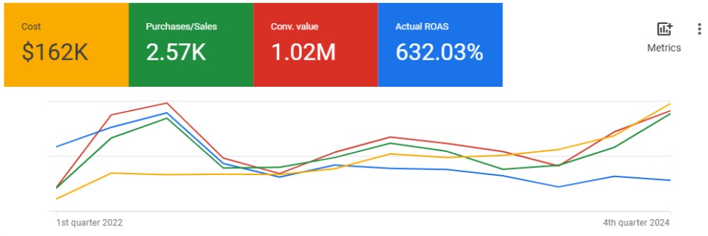 - Управување со Google Ads кампањи кои постојано обезбедуваа висок поврат на инвестиција (ROAS) од 600%+, демонстрирајќи исклучителна ефикасност на кампањите.